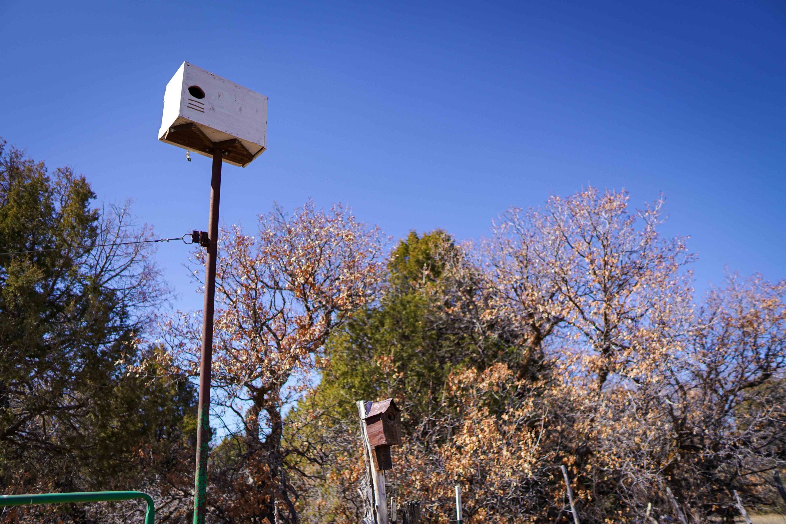 Martinet and Montoya began to see how the Riveras’ project, initially only intended to install wildlife-friendly fences for the elk’s safety, could be broadened to benefit many species and conservation priorities. In addition to implementing new fences at the boundaries of fields, wildlife-friendly fences could also be installed to keep grazers out of a swath of standing alfalfa set aside for birds to use as habitat. Nesting boxes for owls could be installed at the borders of fields (“Maybe they’ll help with the gopher problem!” Sabino says he thought). And the USFWS partner biologists asked if Sabino could do some work on thinning overgrown stands of Gambel’s oak on the property, a contribution that would be protective against wildfire, one of New Mexico’s most ominous environmental threats .