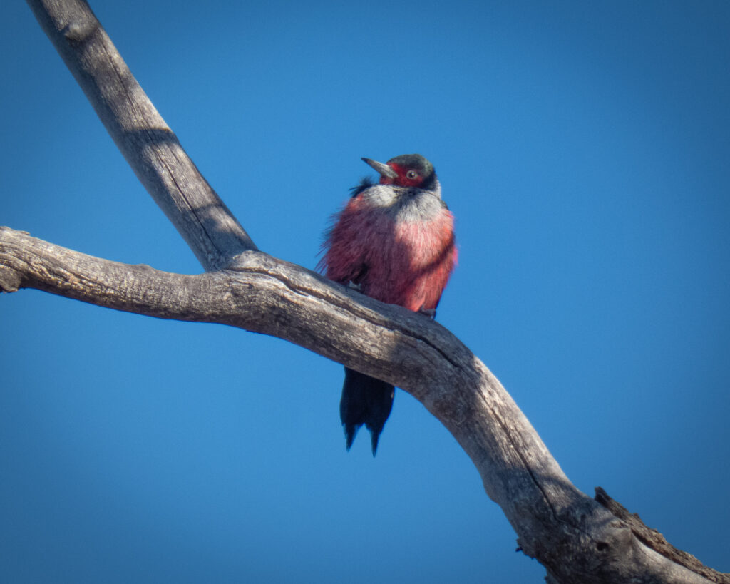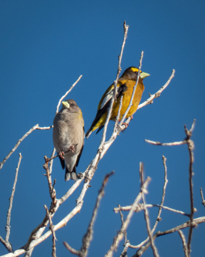 From the evidence McKim had helped collect so far, the team knew that the Riveras’ property held extensive habitat benefits for the elk—enough food, water, and shelter to make them year-round residents. But what Martinet and Montoya saw on the Rivera property was a landscape supporting not just elk, but all manner of biodiversity. A brief walkthrough of the property revealed numerous bird species of conservation concern. Entire flocks of evening grosbeaks clustered at the Riveras’ feeders. Lewis’s woodpeckers claimed holes in standing snags and Clark’s nutcrackers and pinyon jays swarmed in stands of Gambel’s oak and pines. Up the hillside, the Riveras’ fields teemed with pollinators like monarch butterflies and native bumblebees.