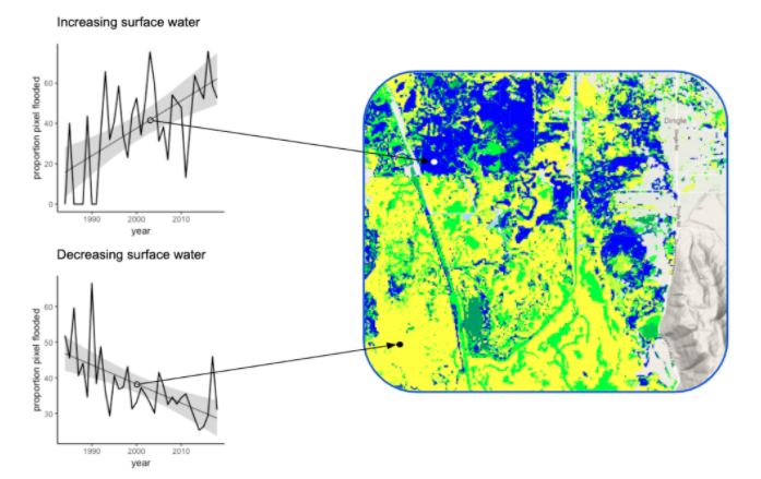 As water availability decreases with each dry year in the Intermountain West, it’s increasingly important to determine where water exists on the landscape and how those “wet oases” coincide with bird use. Patrick Donnelly, the landscape ecologist for the Intermountain West Joint Venture, has teamed up with Ducks Unlimited biologist Dr. Mark Petrie and Dr. Matt Reiter of Point Blue Conservation Science to monitor the effects of climate and human development on long-term wetland resilience. The study focuses on the changes and causes of wetland availability from 1984 to 2020 in SONEC (including the Klamath Basin) and the Central Valley in order to examine the wetland trends and ecological relationships between these landscapes.