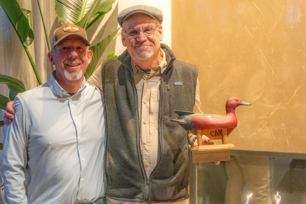 Jim Stutzman received the Water & Wetlands Conservation Partner Award for his pivotal role in shaping the IWJV’s Water 4 effort through his leadership of the SONEC Working Wet Meadows Initiative. Jim drew on decades of experience and credibility with landowners to bring together agricultural producers, NRCS staff, and conservation partners to elevate the importance of flood-irrigated wet meadows for migratory birds. His relationship-driven approach led to innovative investments in irrigation infrastructure, which improved the habitat for Northern Pintails and many other species. Jim’s leadership also led to a lasting partnership with Oregon NRCS, subsequently conserving more than 40,000 acres of wet meadow habitat. This work inspired similar initiatives across the West. This award celebrates Jim’s vision, dedication, and lasting impact on conservation in the heart of the Pacific Flyway.