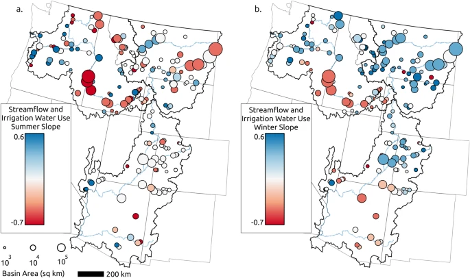 We show in our paper that as irrigation water use increases, the response in terms of stream flow changes is nuanced and likely related to the unique characteristics of each river basin, the irrigation systems and management practices in place, and the climate of the region. Our work indicates that irrigation systems sometimes thought of as inefficient are likely returning water to the basin from which it was diverted, making it available for later use by water users and available to ecological systems.