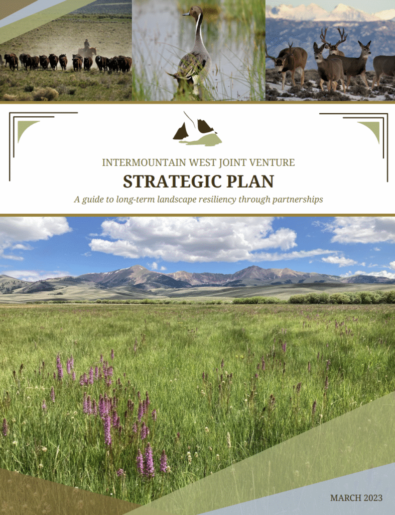 The Intermountain West Joint Venture’s (IWJV) Strategic Plan guides our long-term work. The Plan is written to ensure quick adaptation to unanticipated challenges and meet opportunities as they arise while maintaining mission focus. The Plan reflects the complex nature of social and ecological systems within the IWJV landscape and is the guiding document from which the Implementation Plan (a five-year plan) and the Annual Operational Plans (annual spend plans) are built.